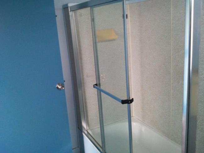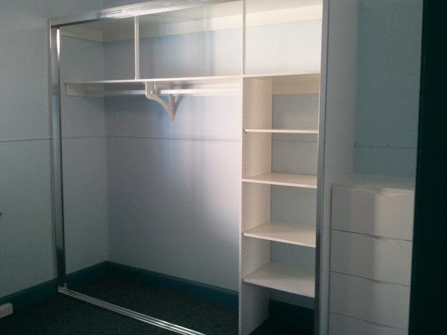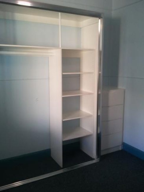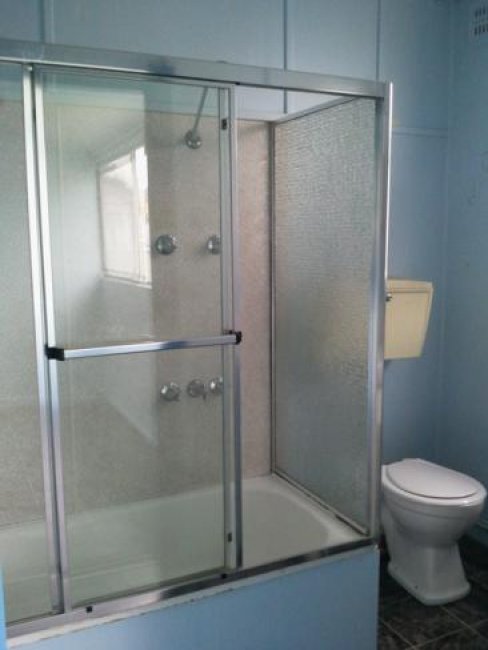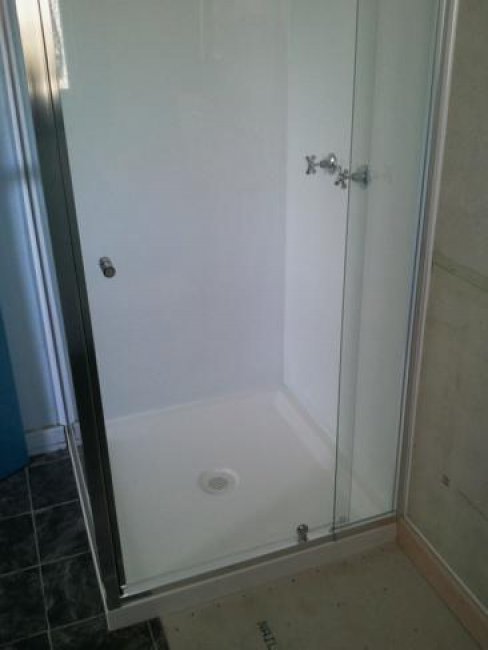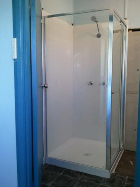 Remove existing bath Install acrylic shower recess unit Build custom wardrobe unit to rental property